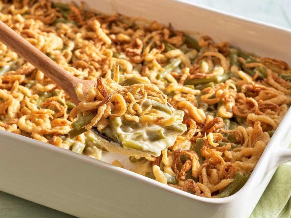 The green beans and cooled mushroom sauce can be combined in the baking dish, covered tightly with plastic wrap, and stored in the refrigerator for up to 24 hours. When ready to bake, remove the wrap, preheat the oven to 425°F, warm the casserole for 10 minutes, then top and finish baking.