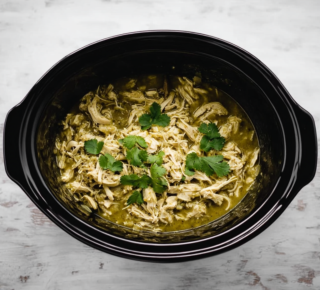 Crockpot Salsa Verde Chicken with tangy tomatillo salsa, mild spice, and tender, flavorful chicken. Perfect for tacos, burritos, or any Mexican-inspired dish.