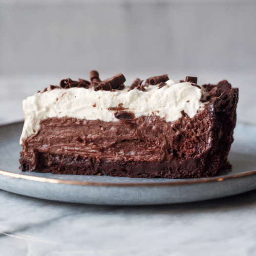 - Top pie with whipped cream and garnish with chocolate shavings.