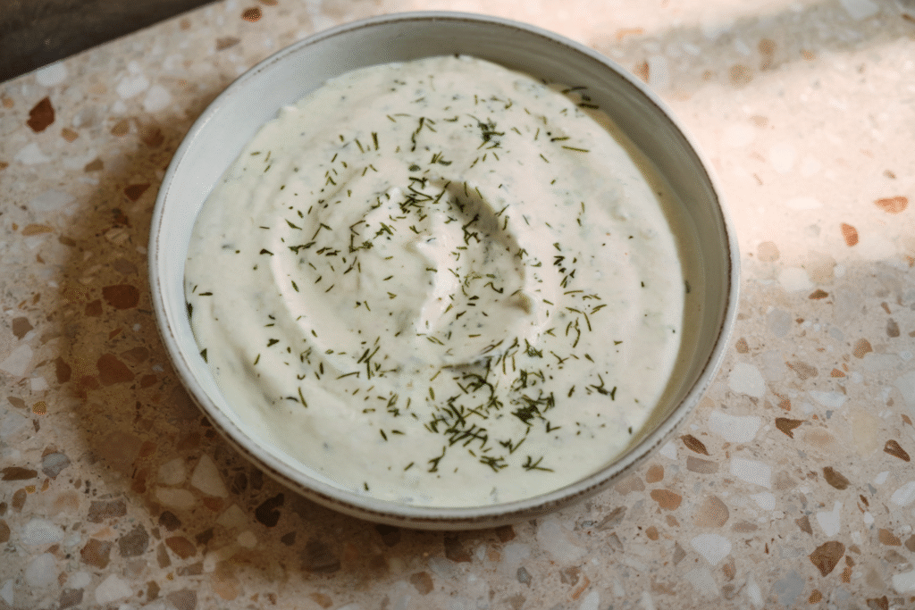 - Whisk Greek yogurt, mayonnaise, garlic powder, onion powder, and dried dill in a medium bowl until smooth.